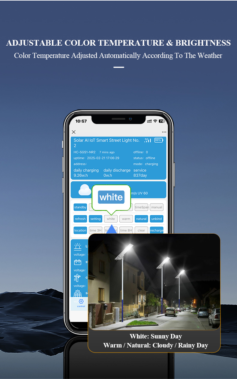 WERISE AI GPS Solar LED Road Light with AI Control Adjustable Brightness & Color Temperature Aluminum Alloy Construction