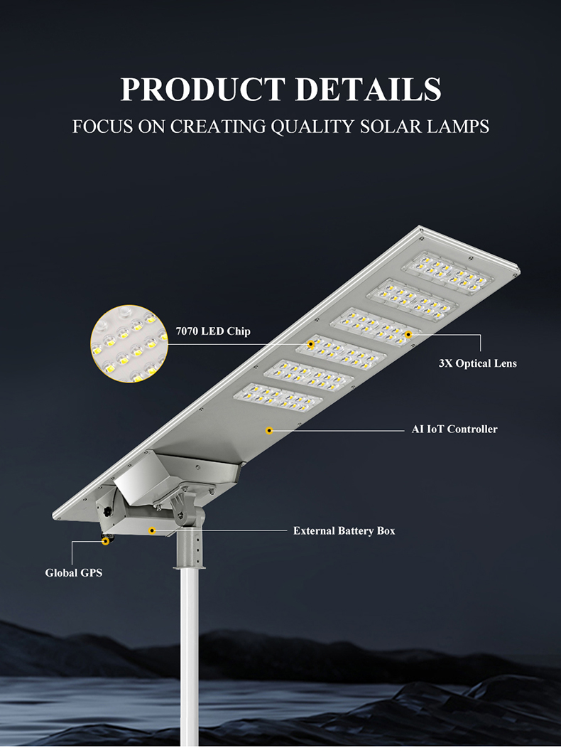 WERISE Energy Saver IP65 Outdoor Waterproof Energy Saving External Battery Box 100w 200w 300w AI Solar Led Street light